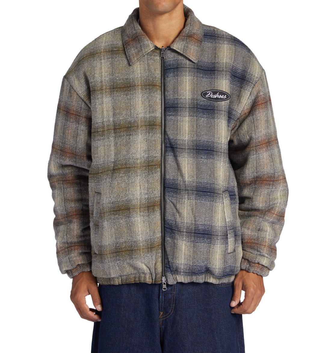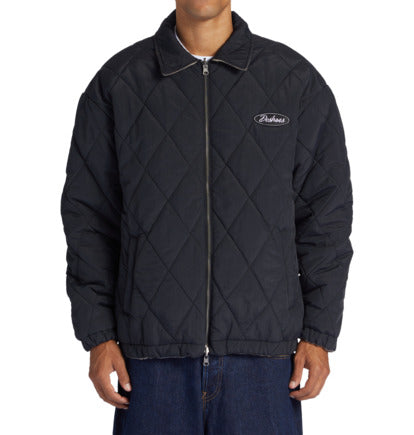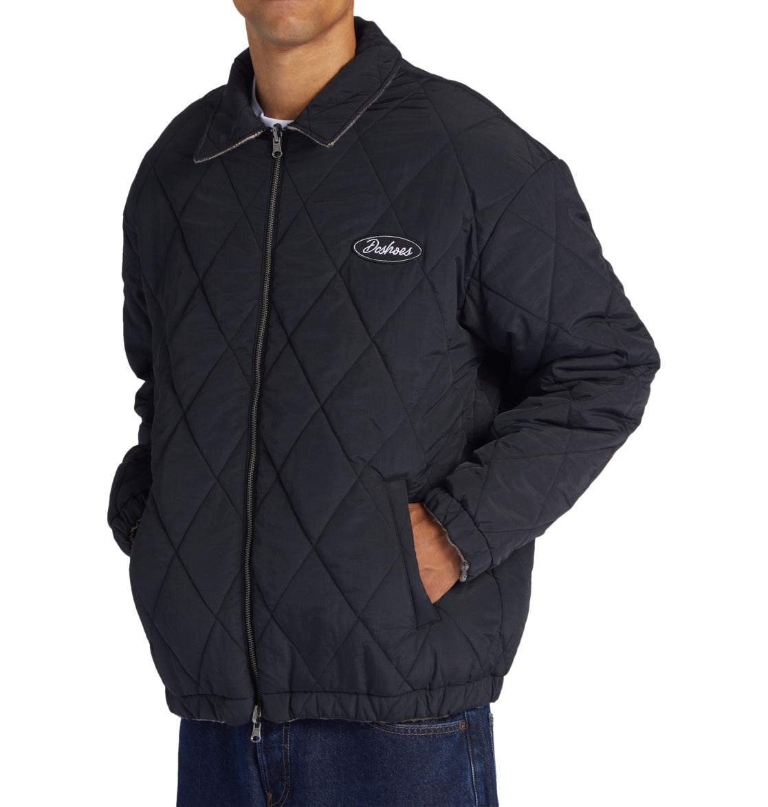 Waterproofed and treated with a durable fabric treatment to protect you from the elements, the Hat Trick Reversible Bomber Jacket features nylon diamond quilting on one side with cozy flannel fabric on the other. Styled with a boxy fit, welt pockets and a DC woven chest label.