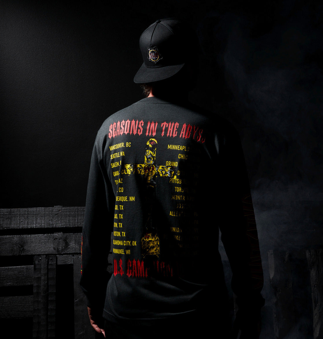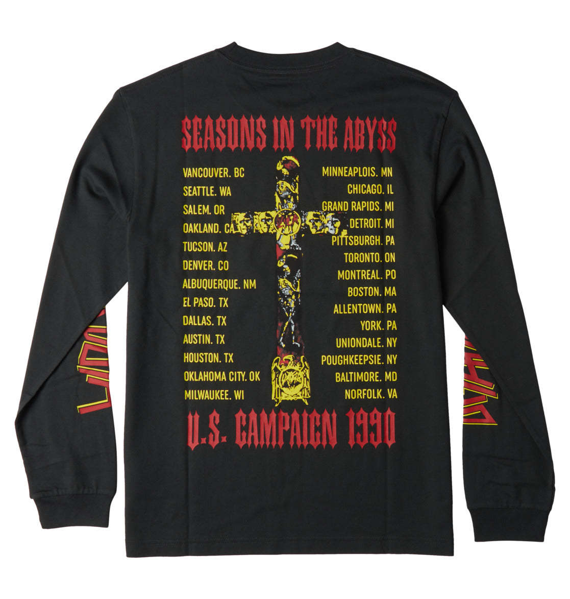 Slayer "Seasons In The Abyss" tour date plastisol print on back DCSHOECOUSA plastisol prints on both sleeves
