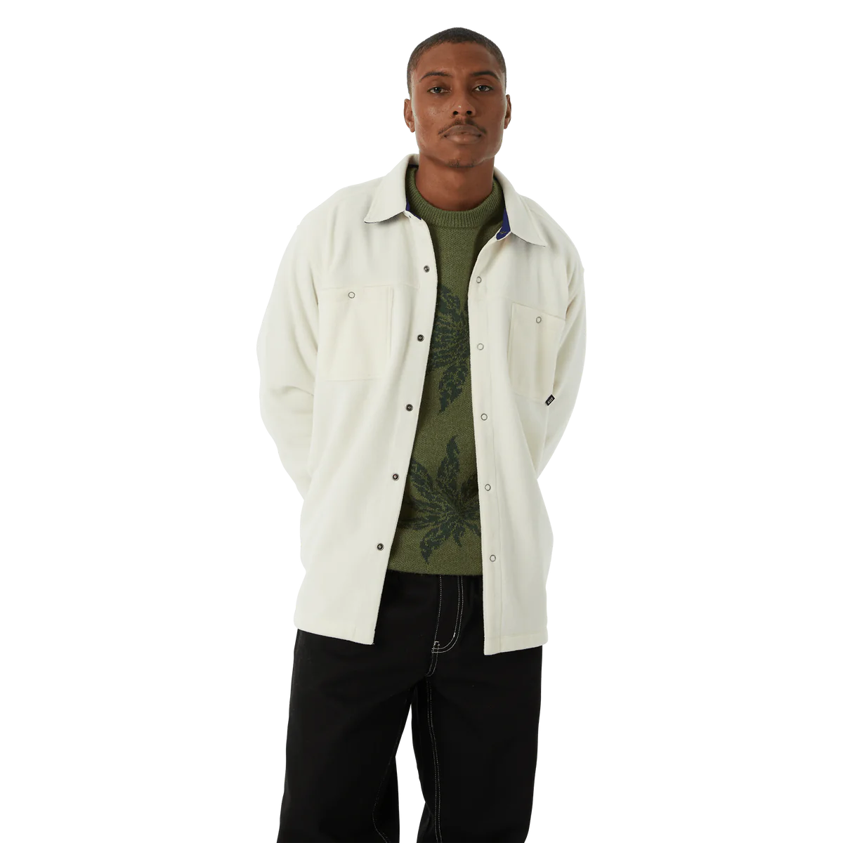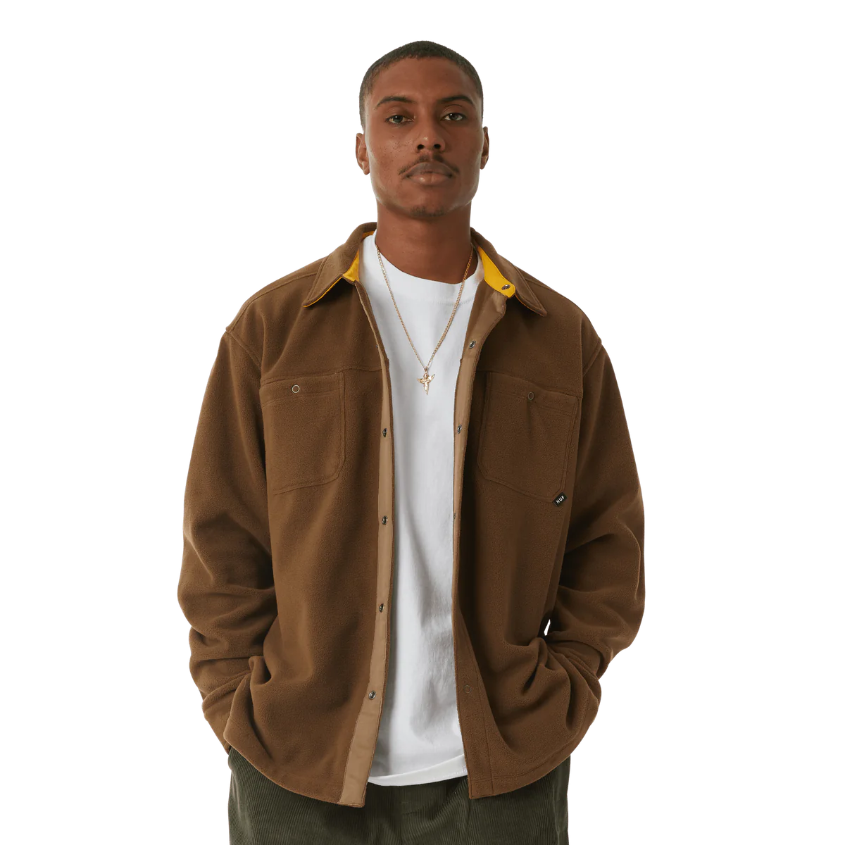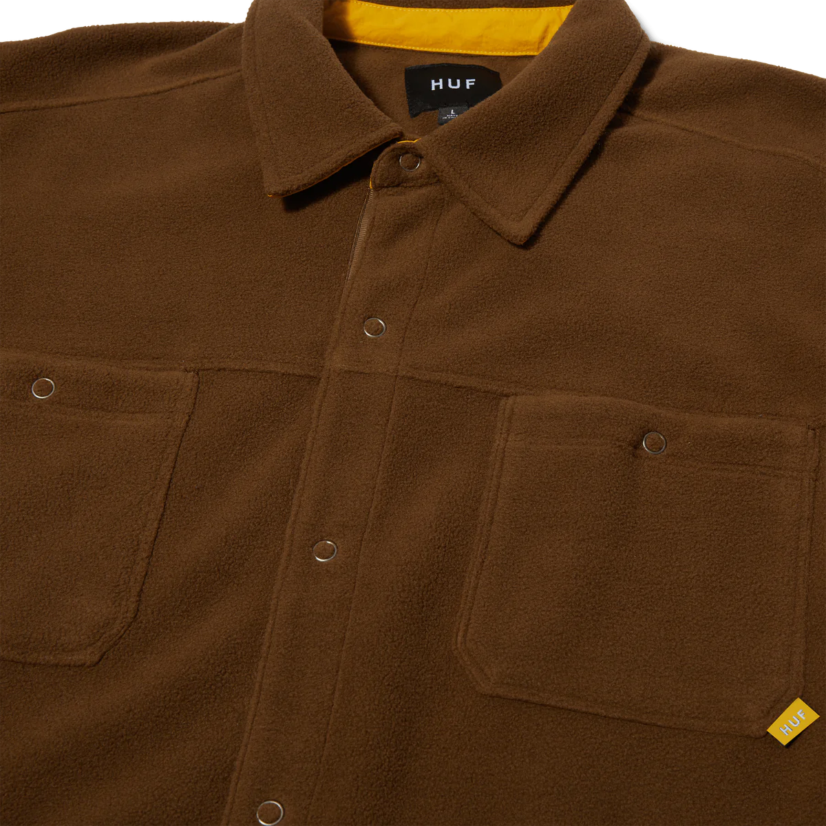 Holiday 23 throws out seasonal conventions and redefines winter wardrobe staples by leaning into contrasting color palettes, unique graphic placements, and revitalized HUF heritage. A foundational layer with full snap closure, the Highland Polar Fleece Overshirt brings new materials to classic workwear design.