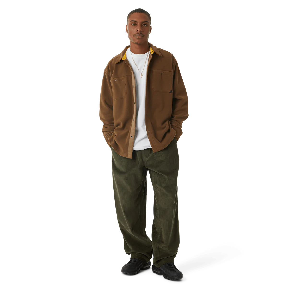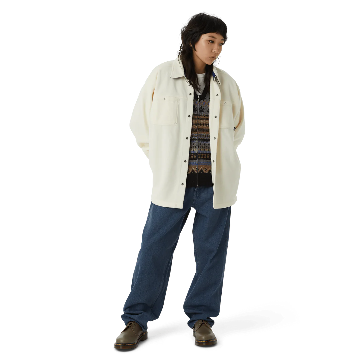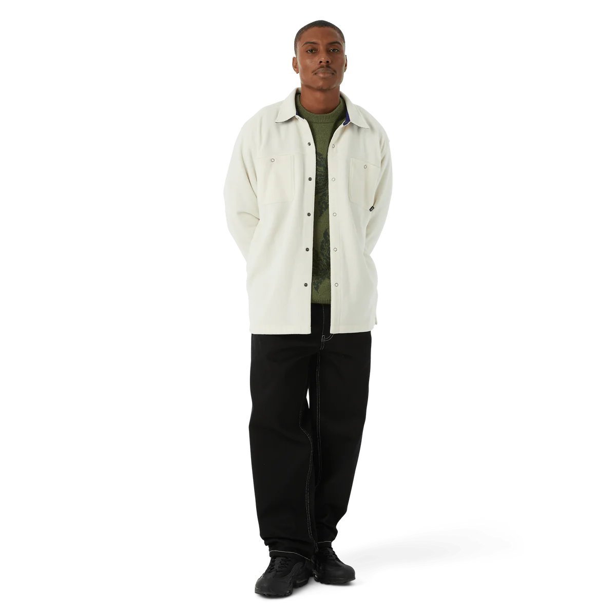 Holiday 23 throws out seasonal conventions and redefines winter wardrobe staples by leaning into contrasting color palettes, unique graphic placements, and revitalized HUF heritage. A foundational layer with full snap closure, the Highland Polar Fleece Overshirt brings new materials to classic workwear design.
