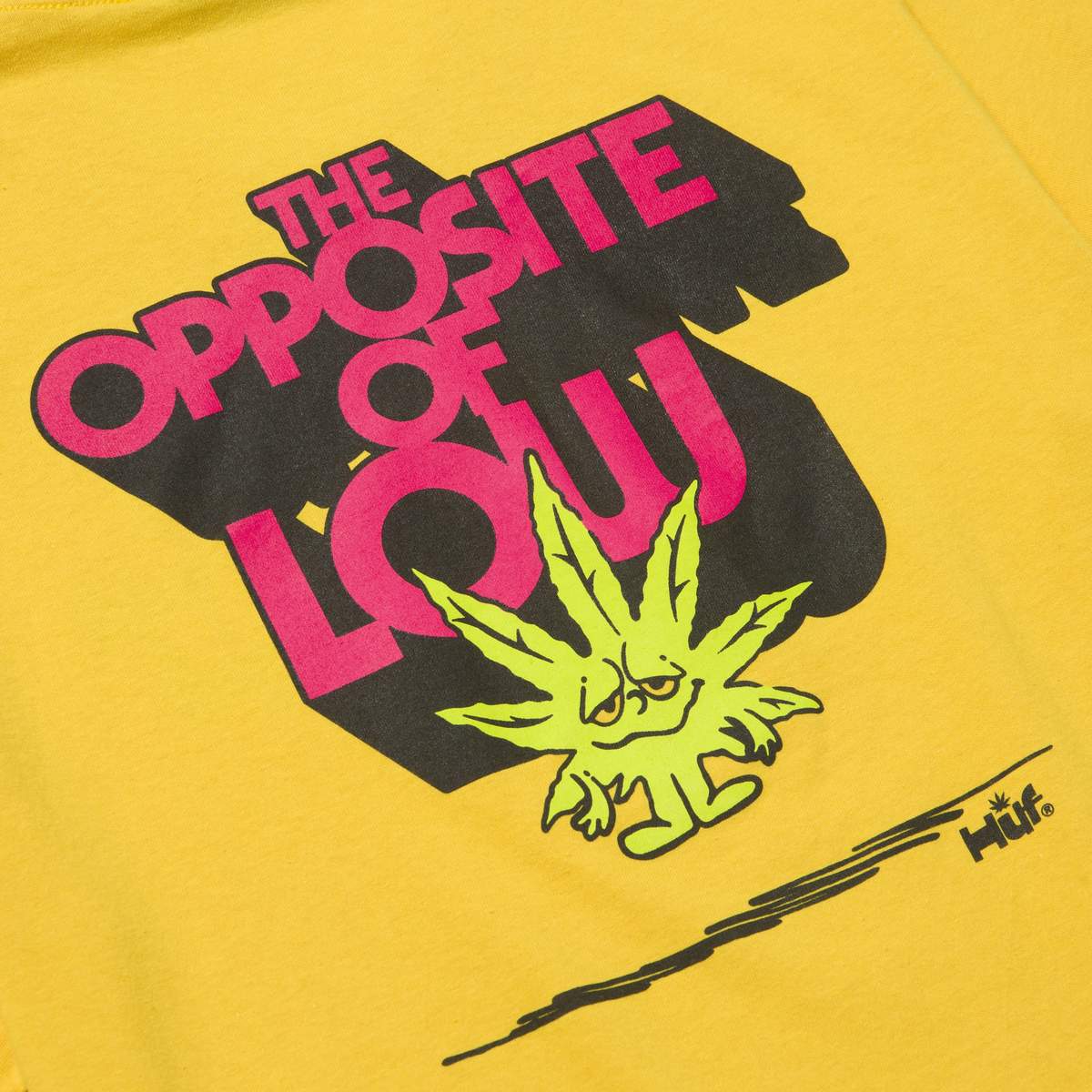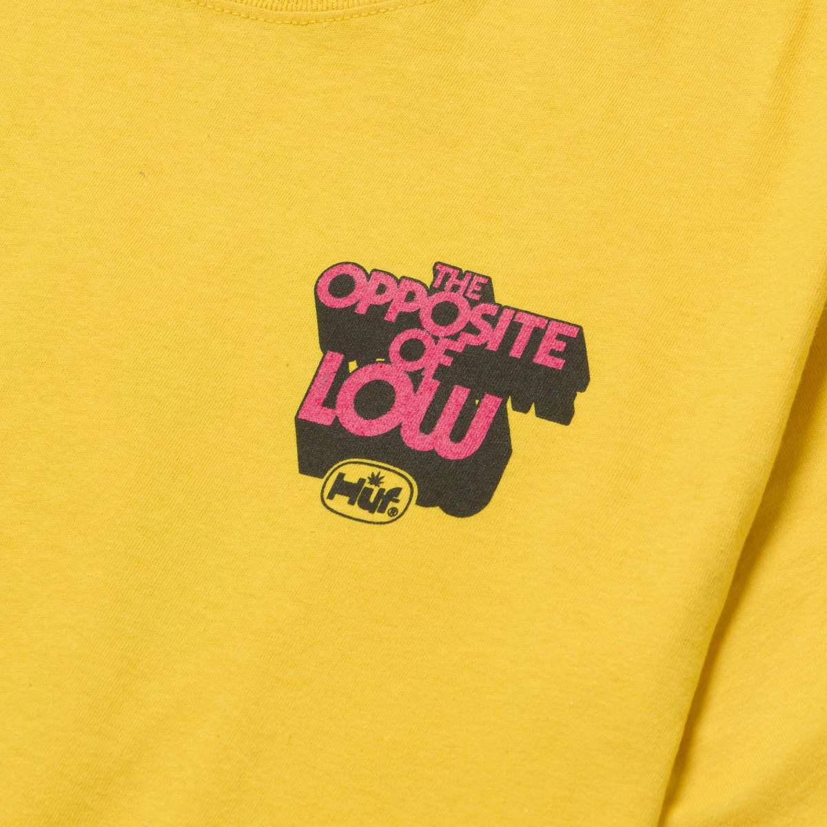 Part of HUF’s 420 Collection, the Opposite of Low Short Sleeve Tee is a DBC-spin on vintage Saturday morning cartoons. Made of pure cotton, the tee features HUF’s signature “Green Buddy” character alongside a slogan reading “The Opposite of Low” in 70s-era typography.