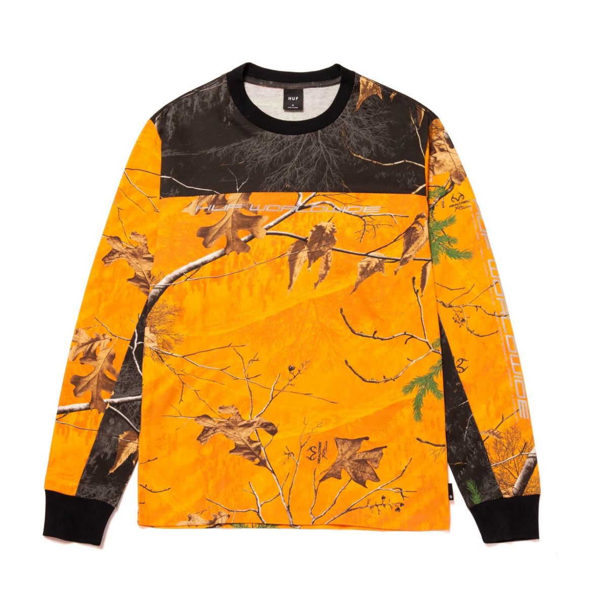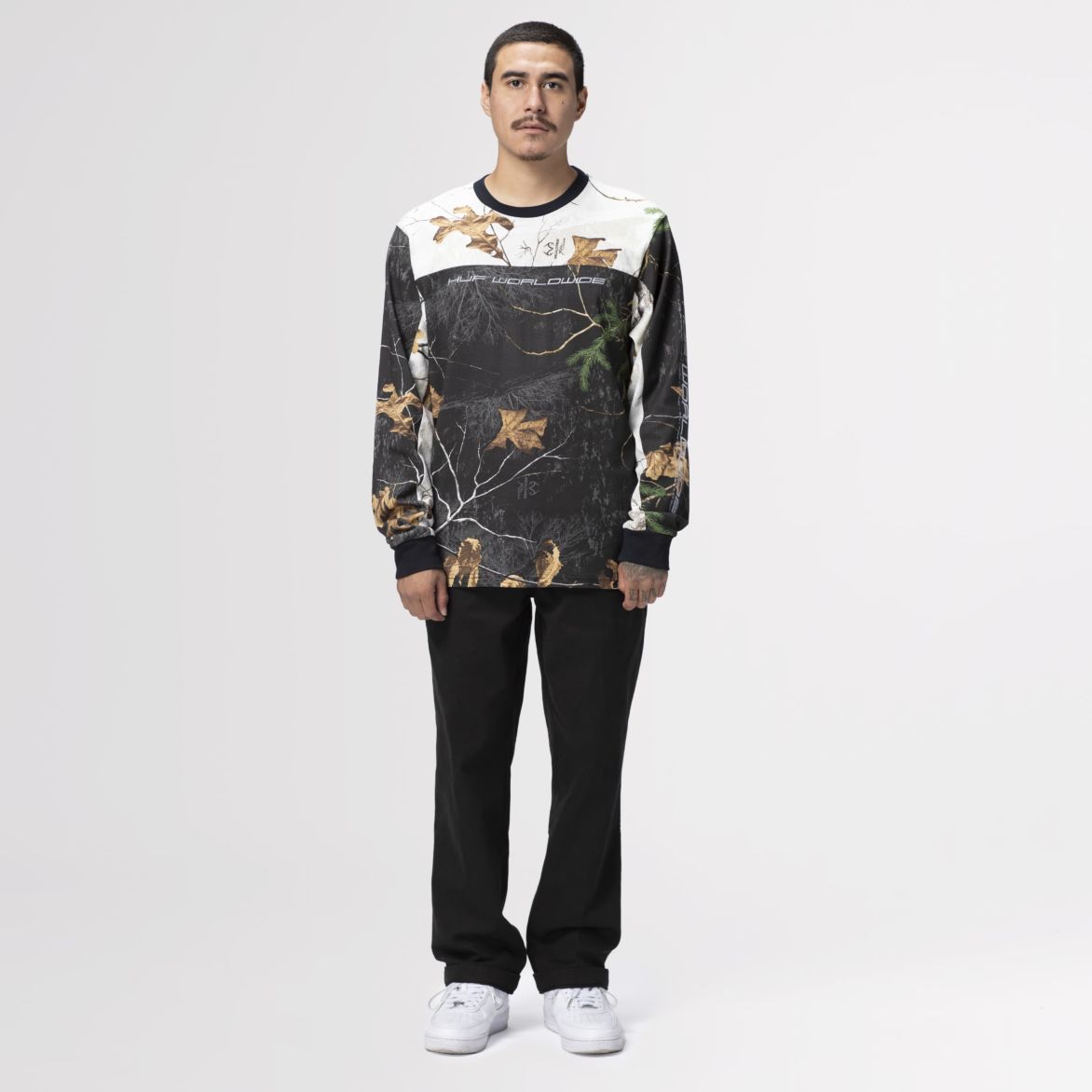 The Endo Long Sleeve Jersey is made of pure, breathable cotton featuring a signature 3D camouflage by renowned outdoors wear-specialist Realtree®. Inspired by vintage motocross racewear, the jersey offers a color-blocked construction and is complete with a reflective HUF Worldwide logo across the chest and down the left sleeve for high visibility.