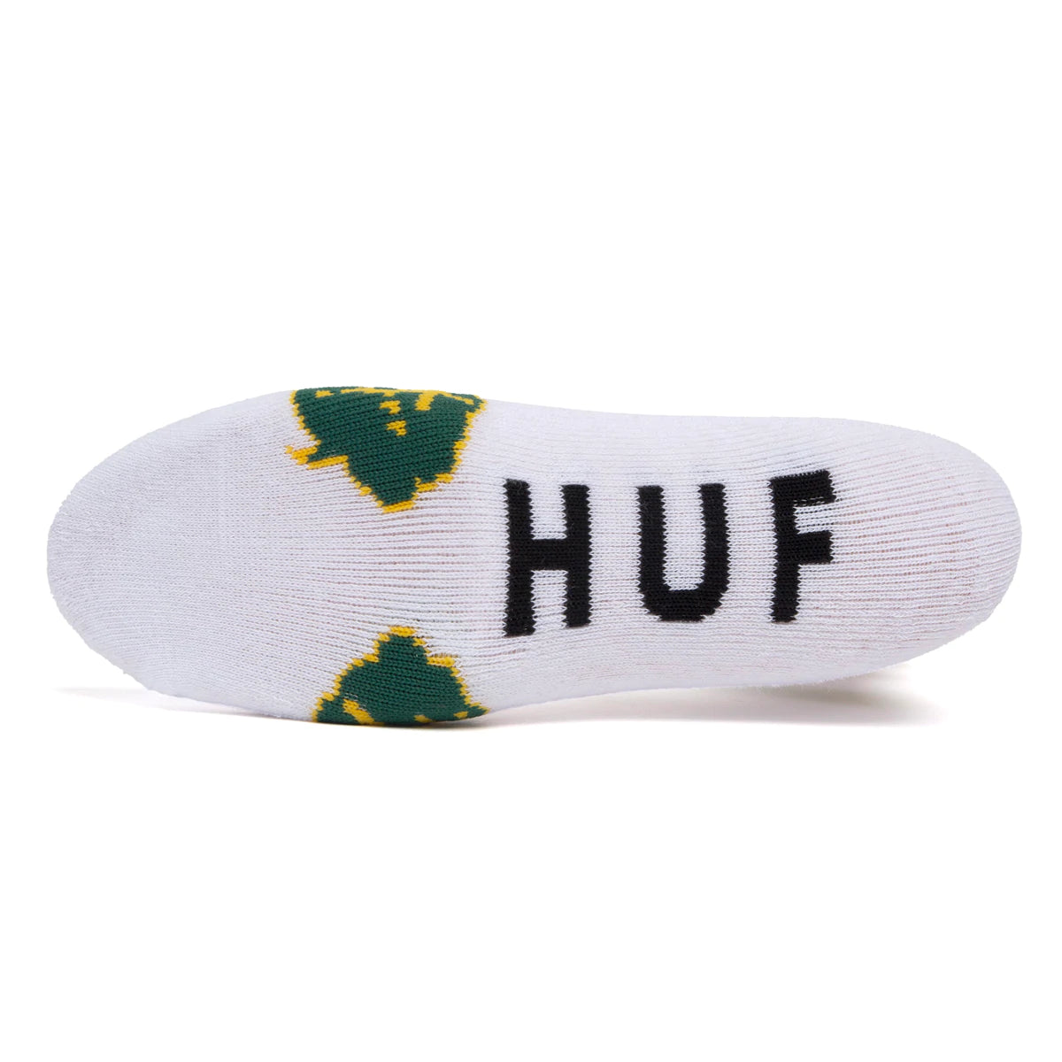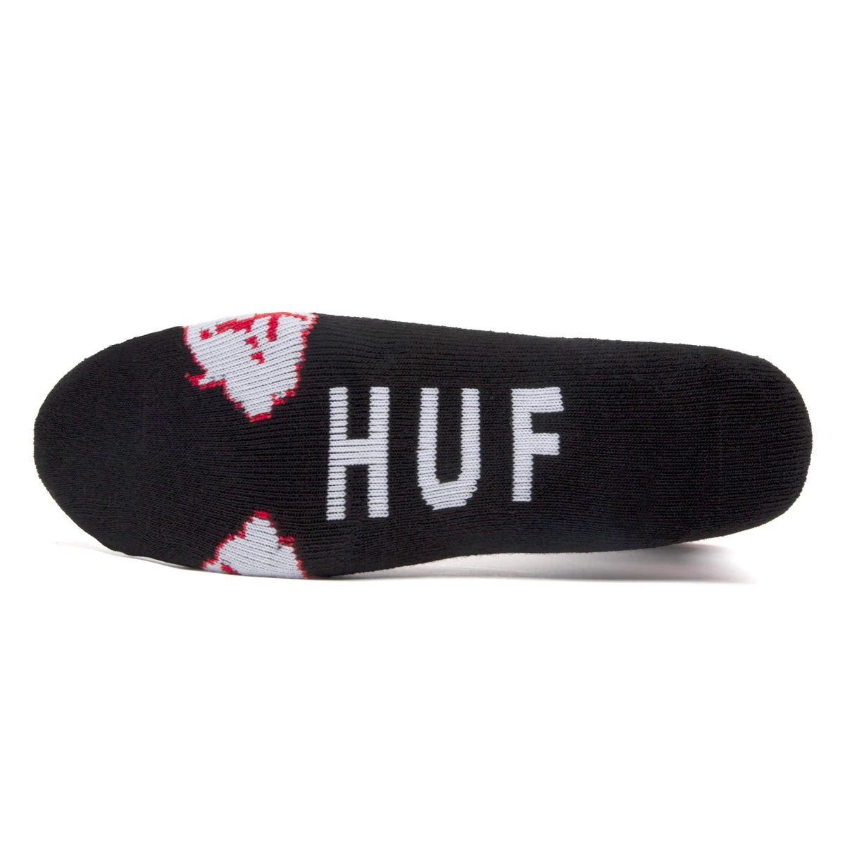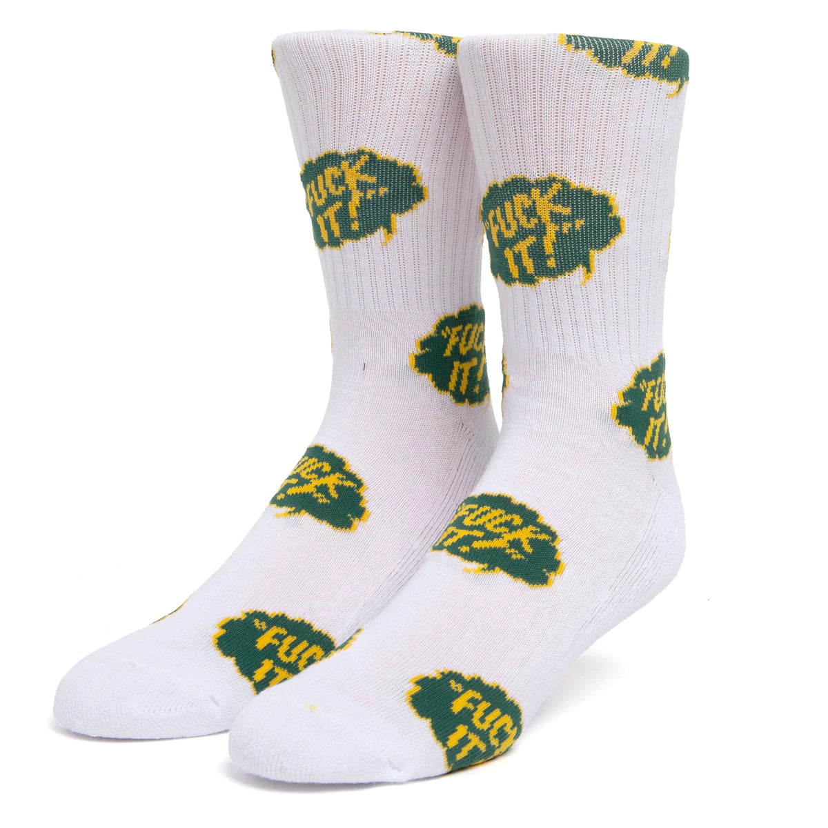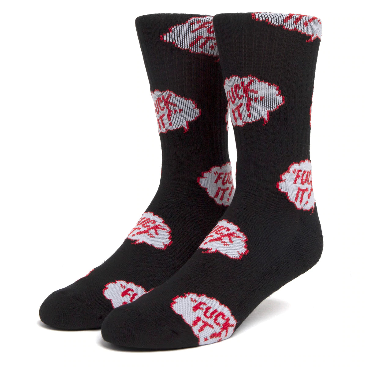 The Motto Sock features HUF's signature 'Fuck It' slogan in an all-over motif on a solid color body. A reinforced heel and toe offer extra durability, while a cushioned footbed adds comfort and support.